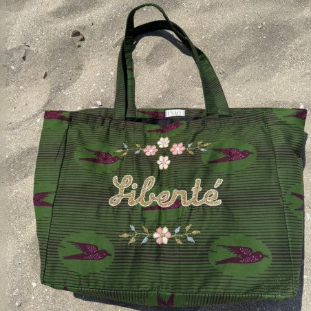 Tote bag large model hand embroidered, fully lined with a large inside pocket. The embroideries are made by women, in our workshops in Senegal.