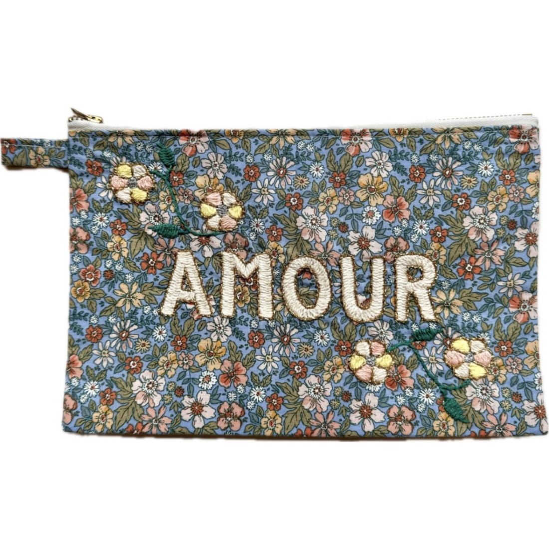Practical hand-embroidered pocket to store makeup, pens, keys, ID, phone or other secrets. It slips easily into your bag.