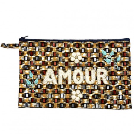 Practical hand-embroidered pocket to store makeup, pens, keys, ID, phone or other secrets. It slips easily into your bag.