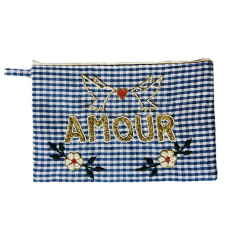 Clutch hand-embroidered handy for storing makeup, pens, keys, identity papers, phone or other secrets. It will slip easily into your bag.