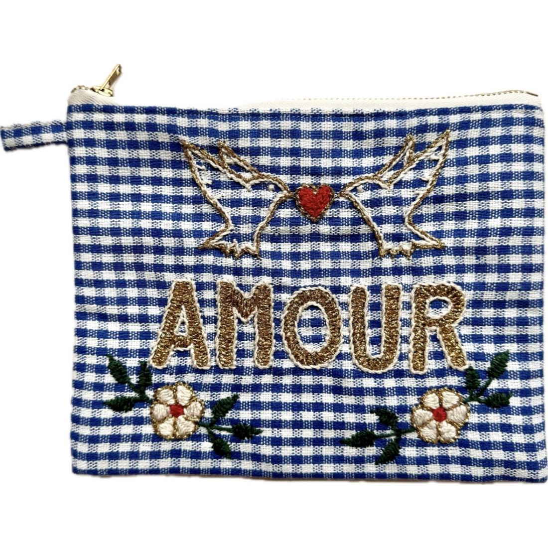 Practical hand-embroidered pocket to store makeup, pens, keys, ID, phone or other secrets. It slips easily into your bag.