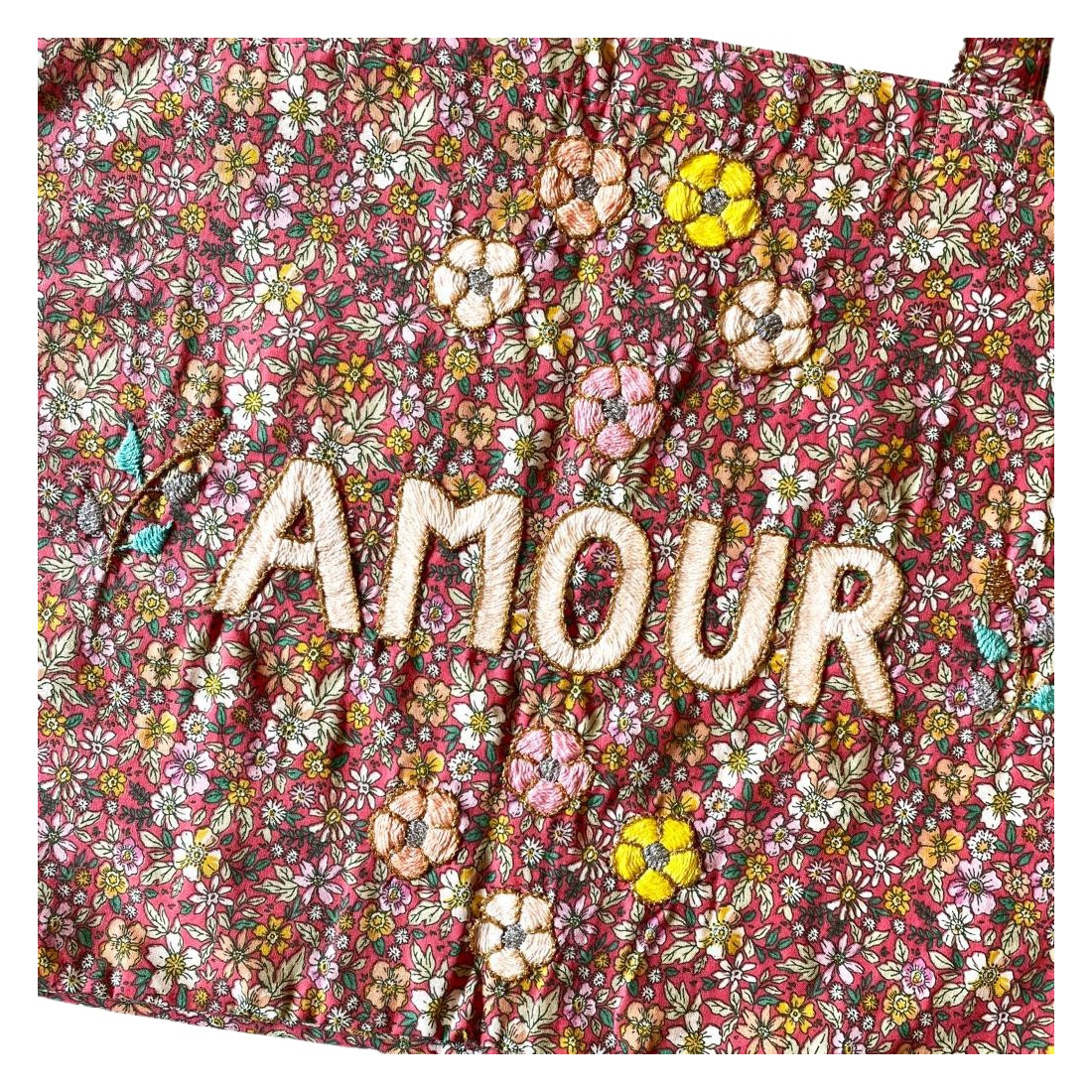 The embroidered shopping bag can be worn in the city, on the beach or for travel.