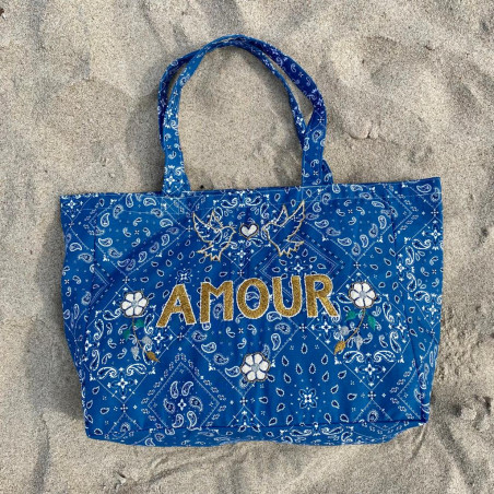 The embroidered shopping bag can be worn in the city, on the beach or for travel.