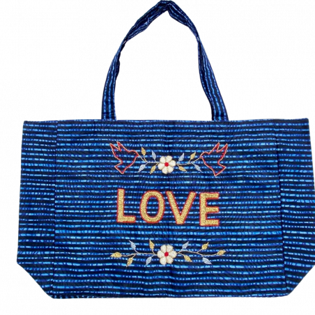 Tote bag large model hand embroidered, fully lined with a large inside pocket. The embroideries are made by women, in our workshops in Senegal. An embroidery represents a day's work and the assurance of a regular income for the embroiderer. The embroidered shopping bag can be worn in the city, on the beach or for travel. To offer or to offer oneself,...