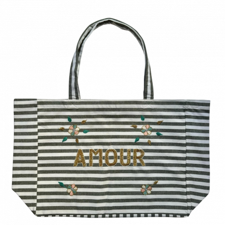 Tote bag large model hand embroidered, fully lined with a large inside pocket. The embroideries are made by women, in our workshops in Senegal. An embroidery represents a day's work and the assurance of a regular income for the embroiderer. The embroidered shopping bag can be worn in the city, on the beach or for travel. To offer or to offer oneself,...