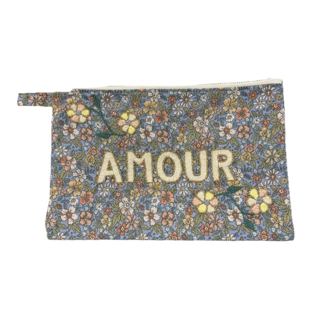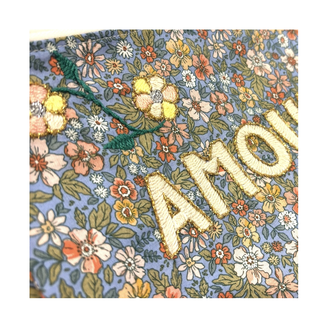 Pochette brodée à la main pratique pour ranger maquillage, stylos, clés, papiers d'identité, téléphone ou autres secrets. Elle se glissera facilement dans votre sac.