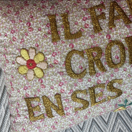 Coussin brodé Il faut croire en ses...