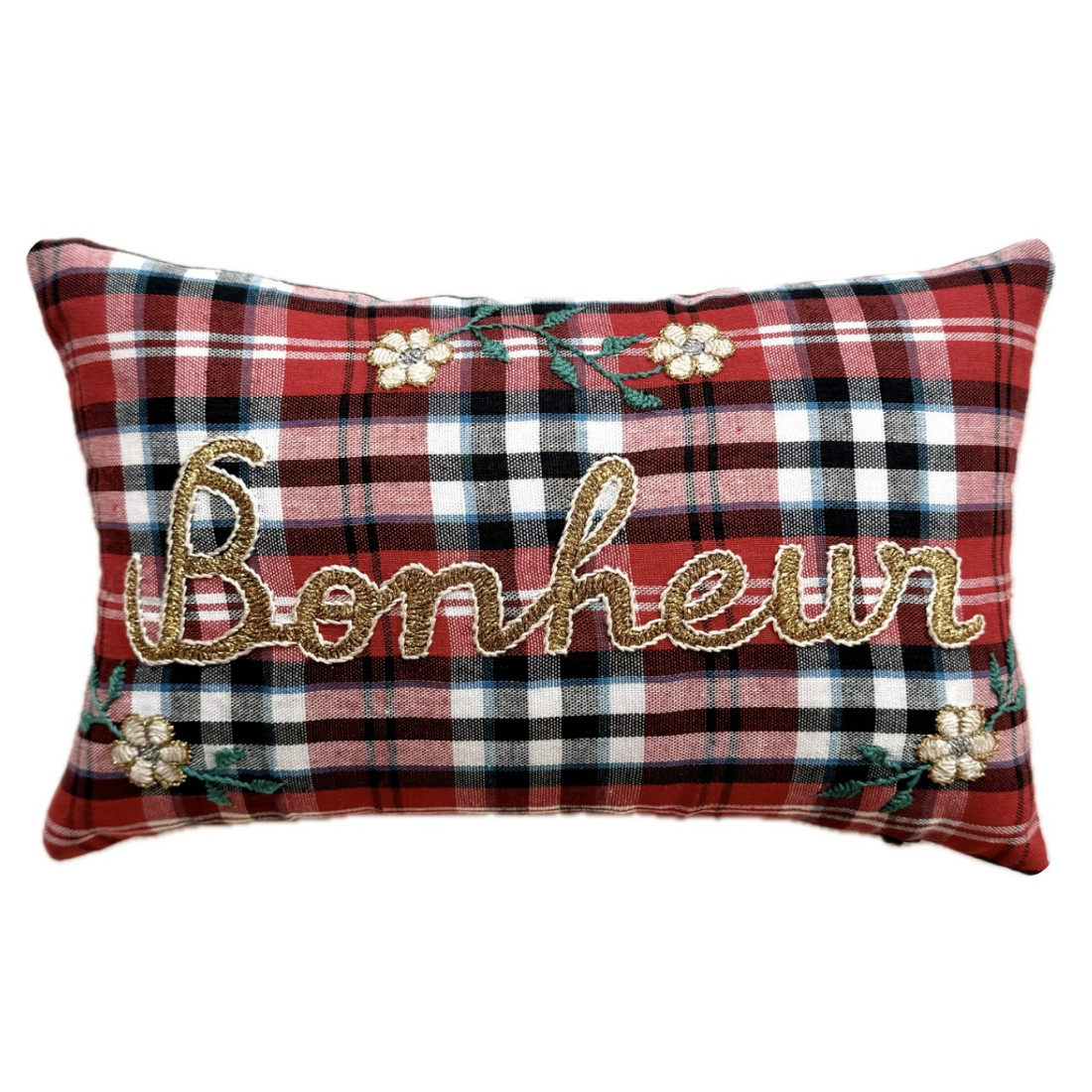 Coussin en tissu brodé main sur l'Ile de Gorée. Ravissant aussi bien dans une chambre que dans un salon à la fois chic et gai.