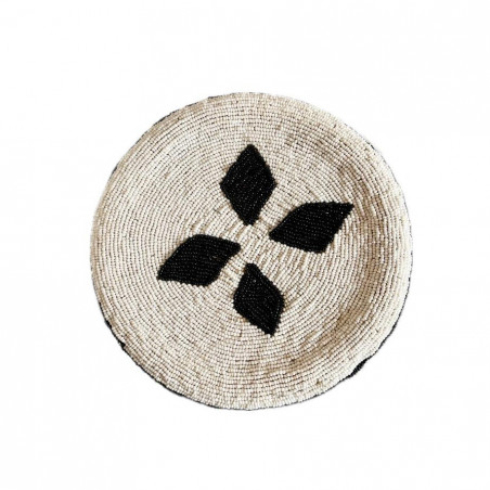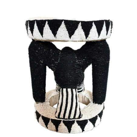 Modèle Oiseau blanc et noir. Les perles sont cousues à la main sur les tabourets.